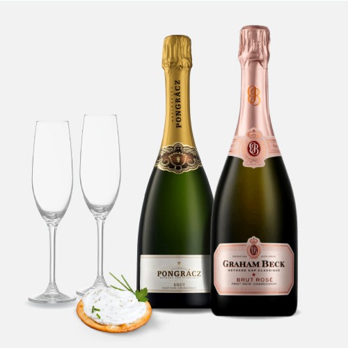 Prongracz brut bubbly or graham beck brut rose in a gift box